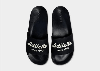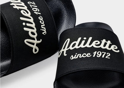 As the saying goes, you don't mess with a good thing. From a morning at the gym to a midday run to the store to an evening on the couch, adidas Adilette slides have been wrapping feet in lightweight comfort and versatile style since 1972. A commemorative graphic celebrates 50 years of this iconic look.
