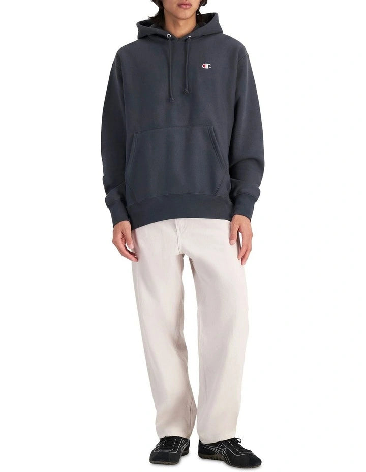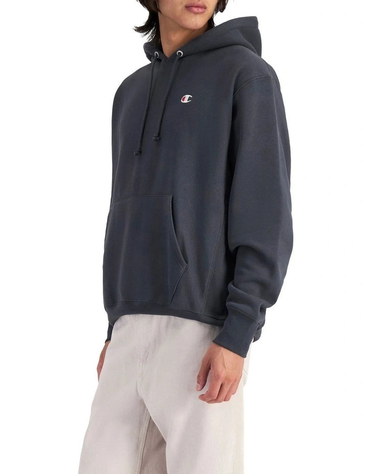 Look stylish and stay comfortable in our Reverse Weave Champion Hoodie. This hoodie is manufactured with the weave running sideways across the back & front panels which prevents length shrinkage, while the signature 1x1 rib side panels allow for maximum range of motion. This double needle heavyweight fleece hoodie is both durable and cosy. Featuring a muff pocket and C Logo at the left chest and sleeve.