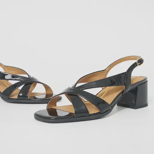 - Design: Cross-over straps with slingback buckle