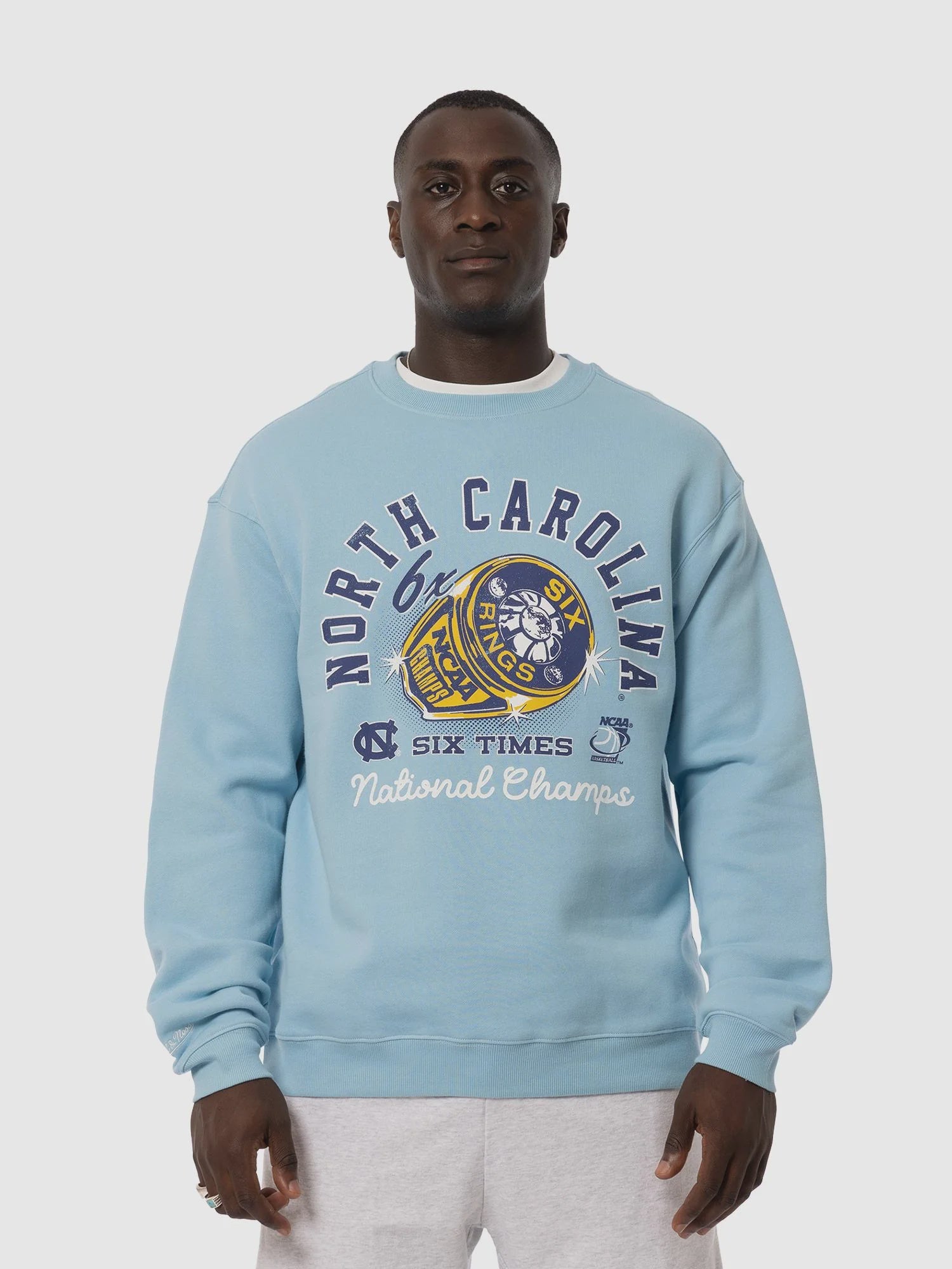 Effortlessly cool, this UNC Champs Rings crew is everything you have been looking for. With an enzyme wash, vintage fit and custom graphics, this crew has the feel of a piece that's survived the ages. Shop this must-have piece today! As one of the oldest public universities within the USA, the University of North Carolina has been enrolling students since 1795. The state has a prominent history of producing tar and pitch, which influenced the athletics team name of the 'Tar Heels'. The mascot of a ram dates back to 1924 when the team manager bought a ram the annual football game against Virginia Military Institute as good luck - the ram was inspired by past player Jack "The Battering Ram" Merrit.