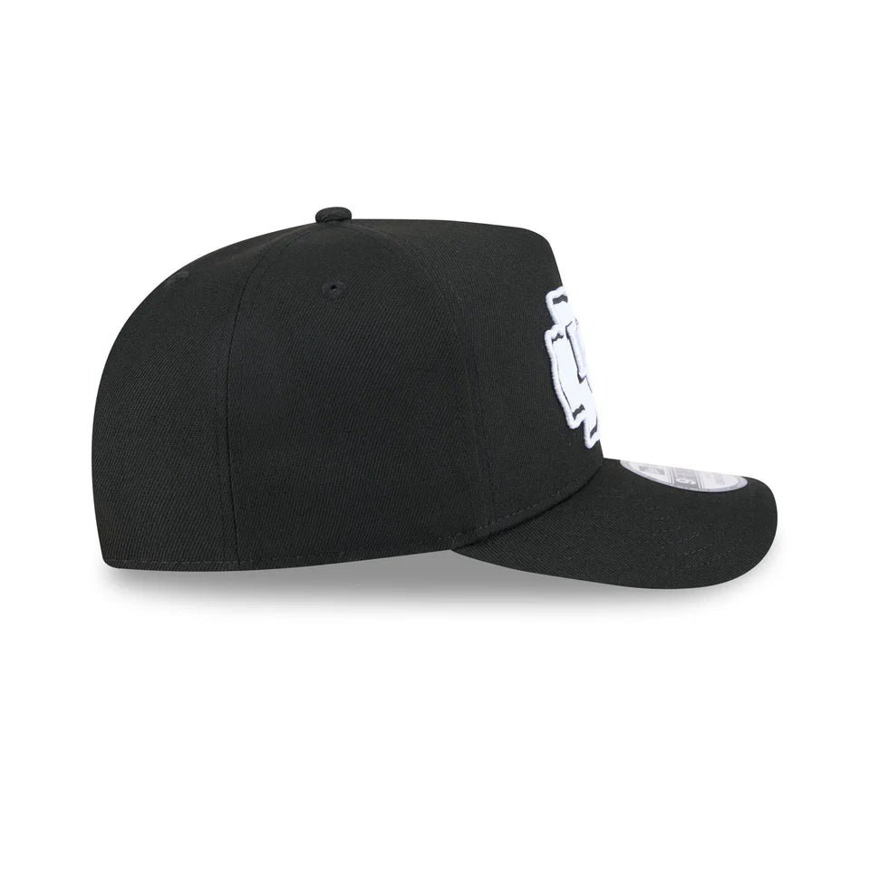 Add monochrome style to your team passion with this Black White 9FIFTY A-Frame Pre-Curved Snapback Hat by New Era