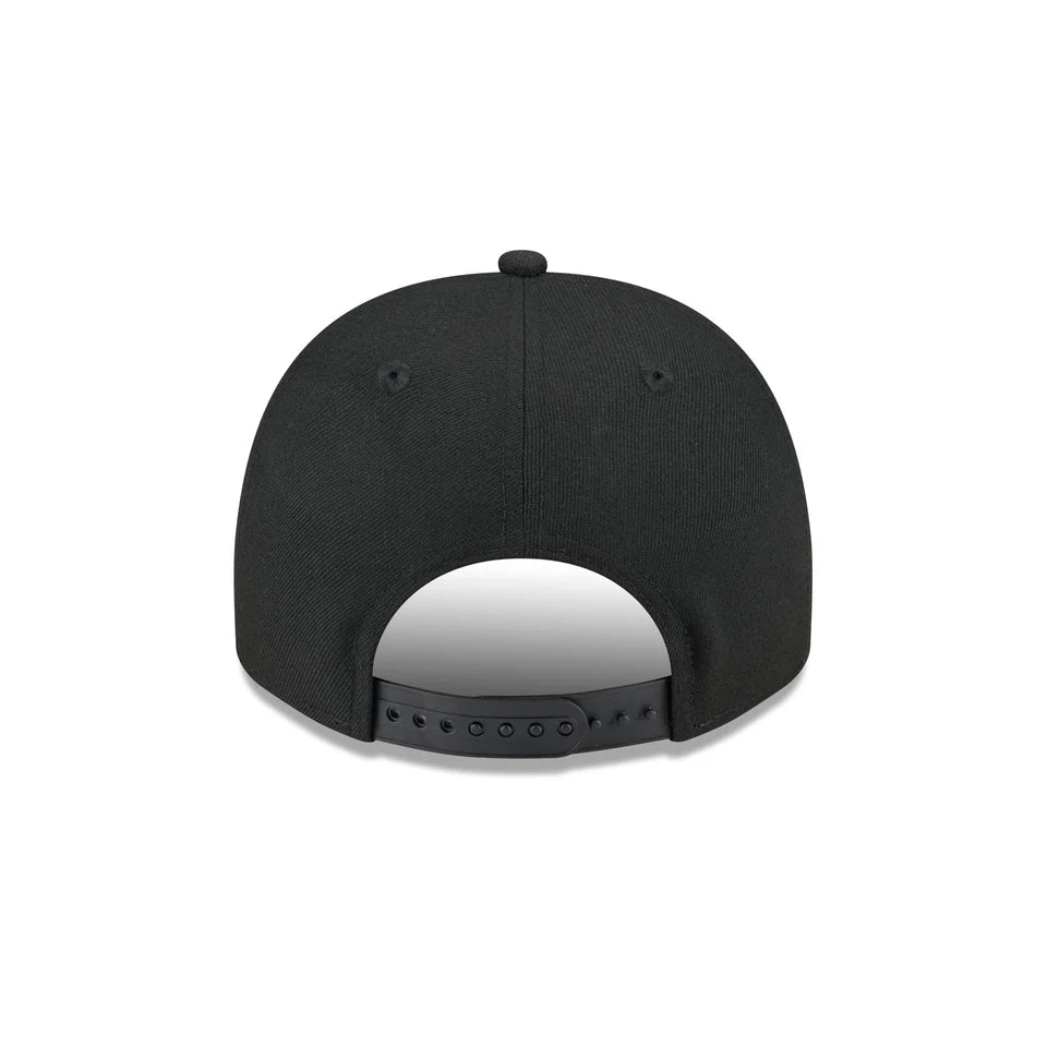 The Los Angeles Kings Classic B/W 9FIFTY A-Frame™ Snapback features an embroidered Kings logo on a high-profile structured polyester crown with a curved visor, complemented by the New Era Flag logo on the left side and an adjustable snapback enclosure.